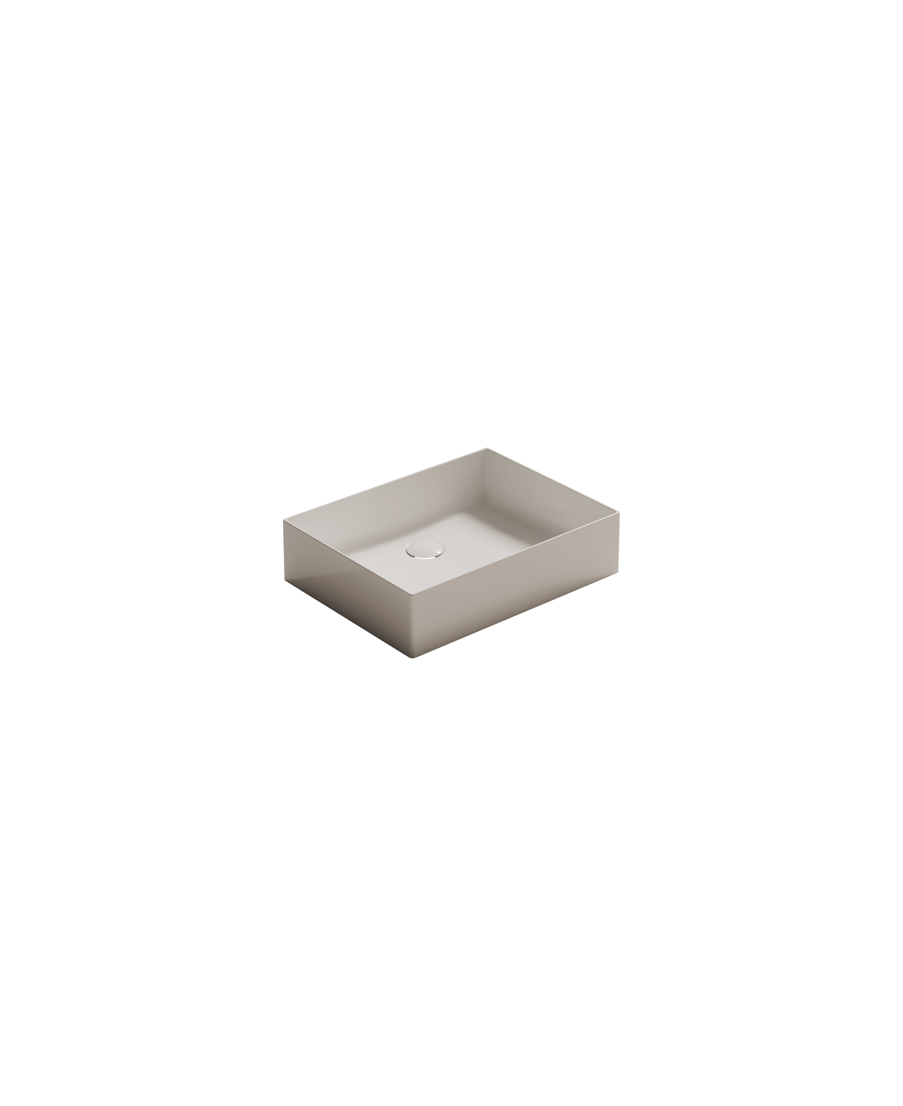 Lavabo da appoggio 50x38 in ceramica che esprime la collezione Slim Square in una forma compatta e leggera. Il bordo sottile e la pulizia del disegno ne fanno un elemento discreto ma distintivo, pensato per portare ordine e raffinatezza nello spazio bagno.