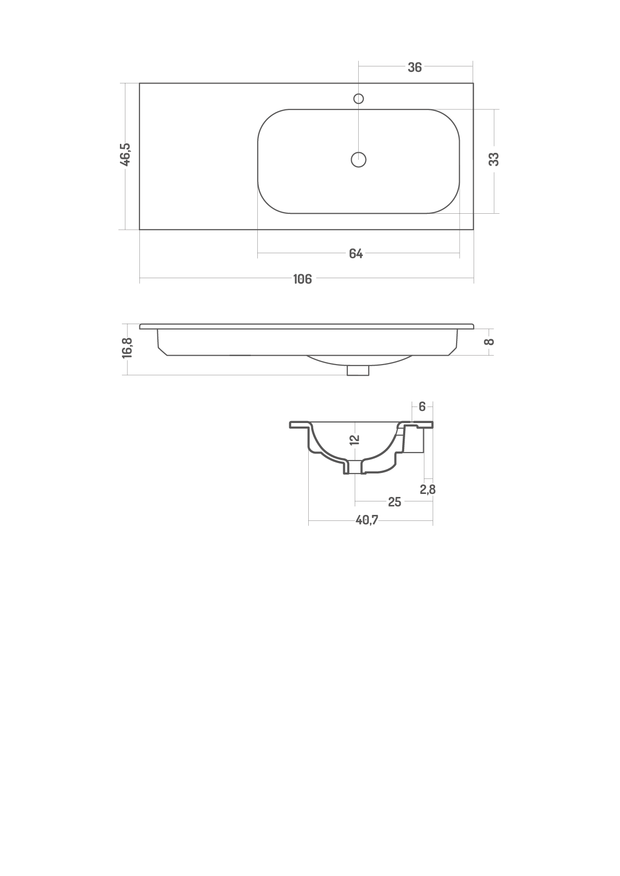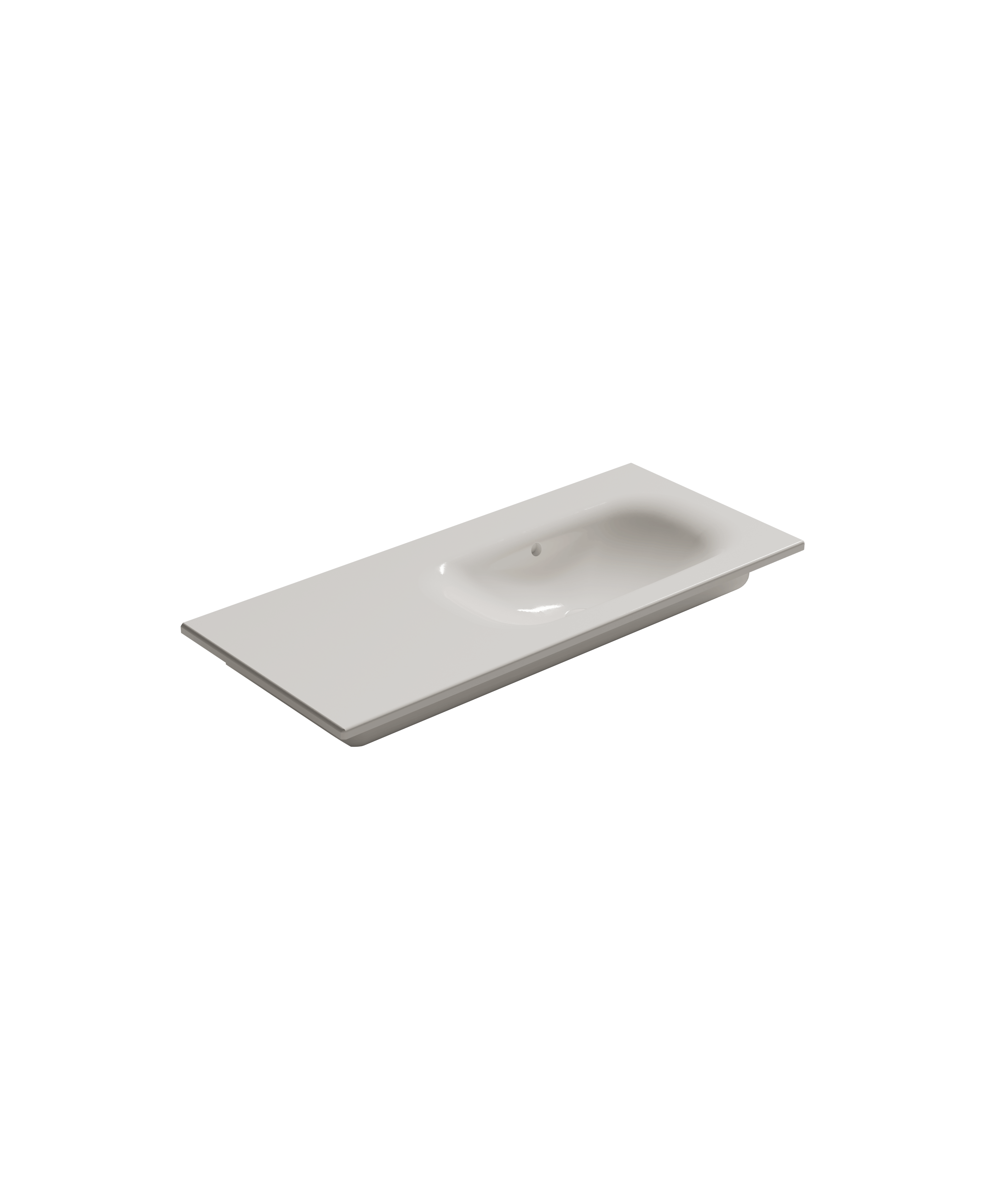 Lavabo incasso 106x46 DX in ceramica che introduce una composizione dinamica e ordinata. La vasca laterale, il profilo sottile e la forma rettangolare mantengono intatta l’identità della collezione, offrendo una lettura più libera dello spazio bagno.