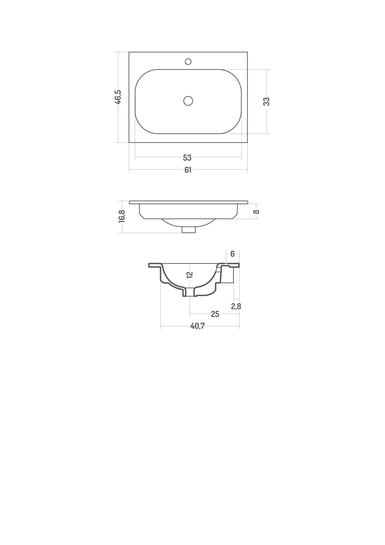 Lavabo incasso 61x46 in ceramica dal segno essenziale e raffinato. La forma rettangolare, l’altezza ridotta e il disegno elegante della vasca danno vita a una presenza discreta ma riconoscibile, pensata per arredare il bagno con leggerezza e stile.