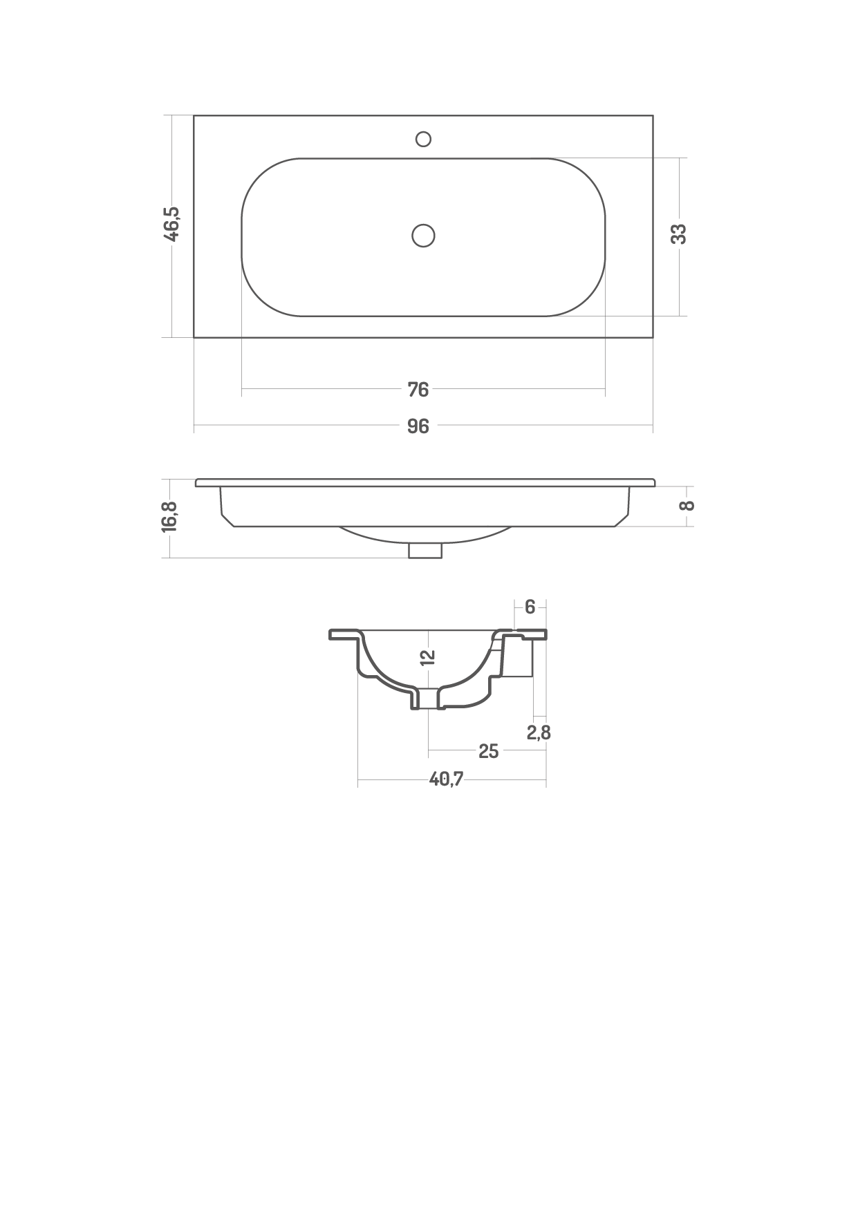 Lavabo incasso 96x46