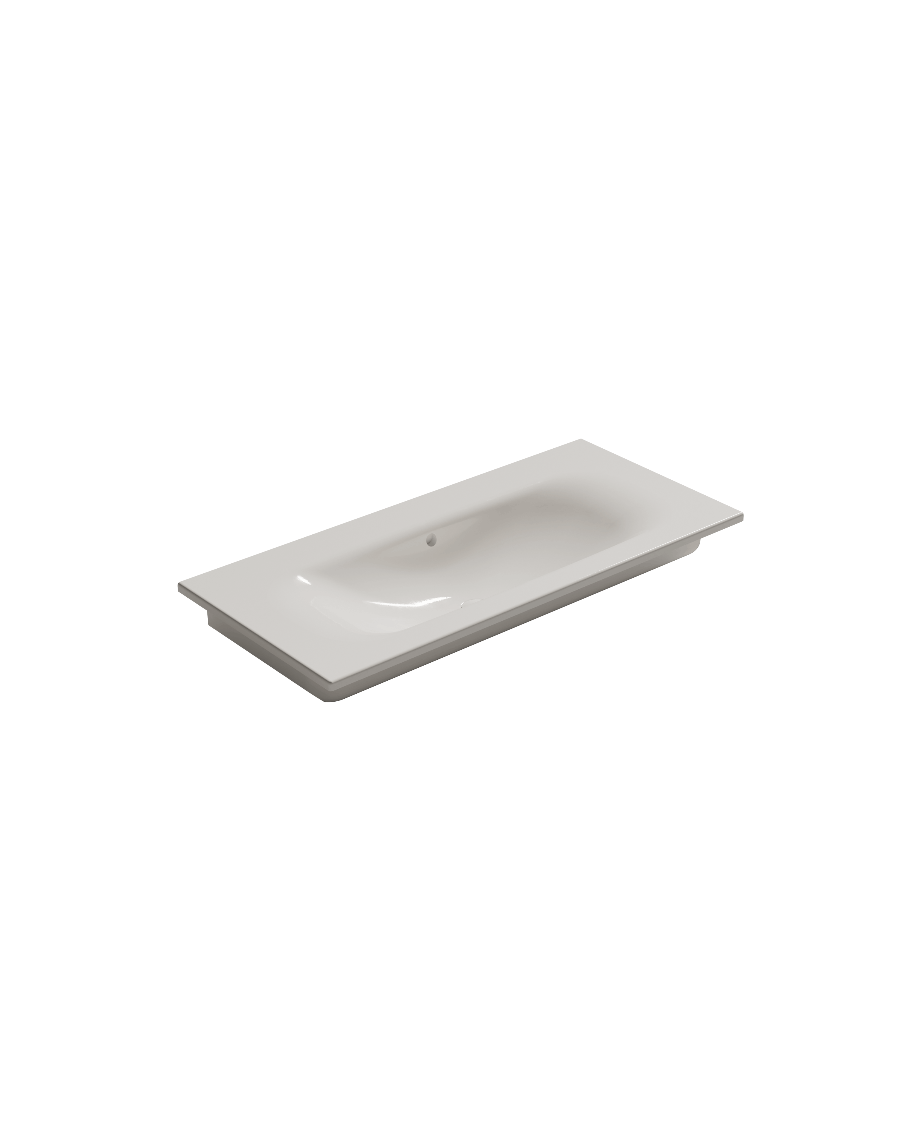 Lavabo incasso 101x46 in ceramica dallo sviluppo orizzontale equilibrato e dal profilo sottile. L’eleganza della vasca e la pulizia del disegno lo rendono un complemento d’arredo capace di interpretare il bagno con sobrietà, carattere e continuità visiva.