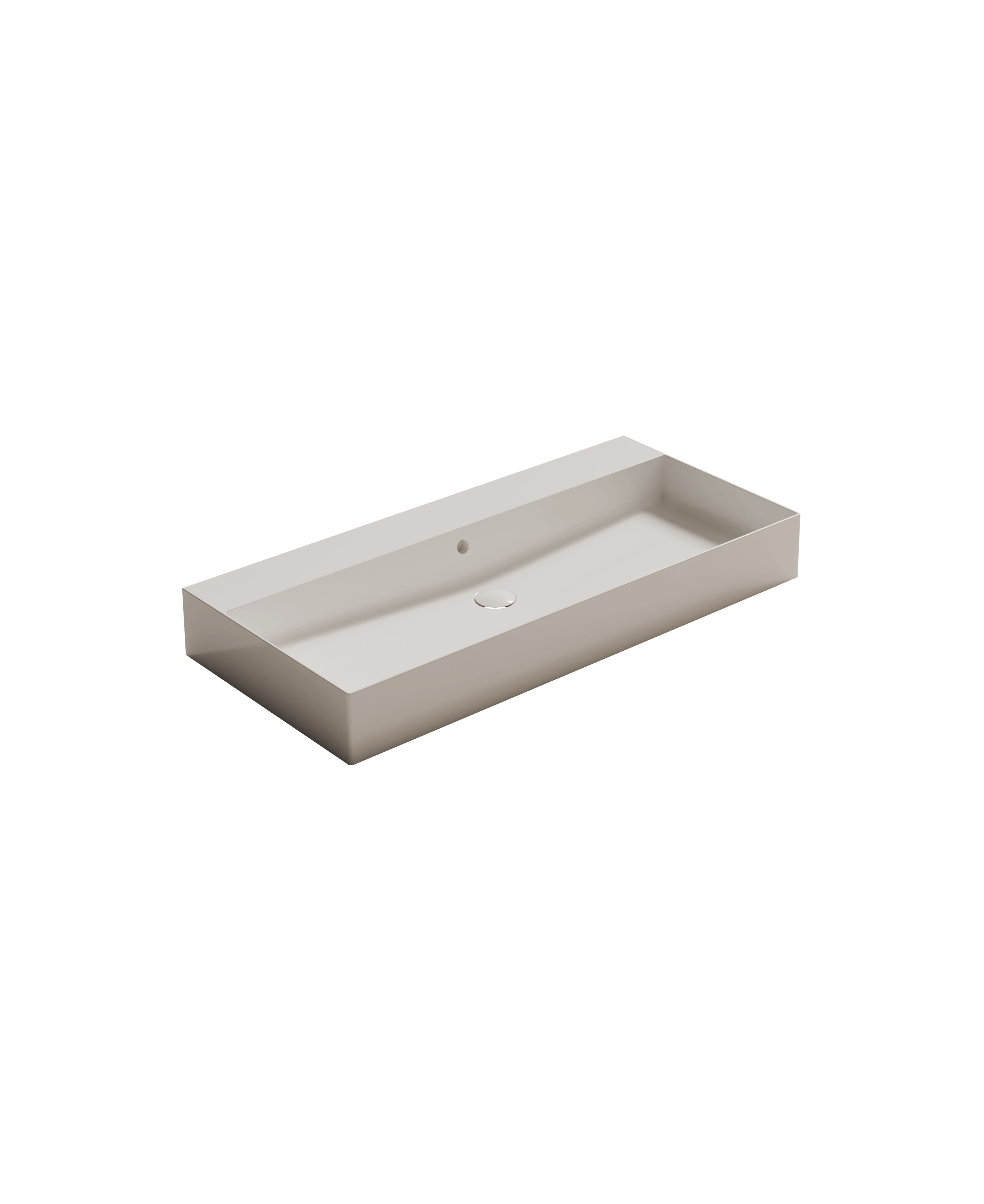 Lavabo appoggio e parete 100x46 in ceramica dallo sviluppo orizzontale equilibrato e dal carattere contemporaneo. Il bordo sottile ne valorizza la forma, mentre la sintesi tra tecnica e design restituisce una soluzione d’arredo sobria, ordinata e ben proporzionata.