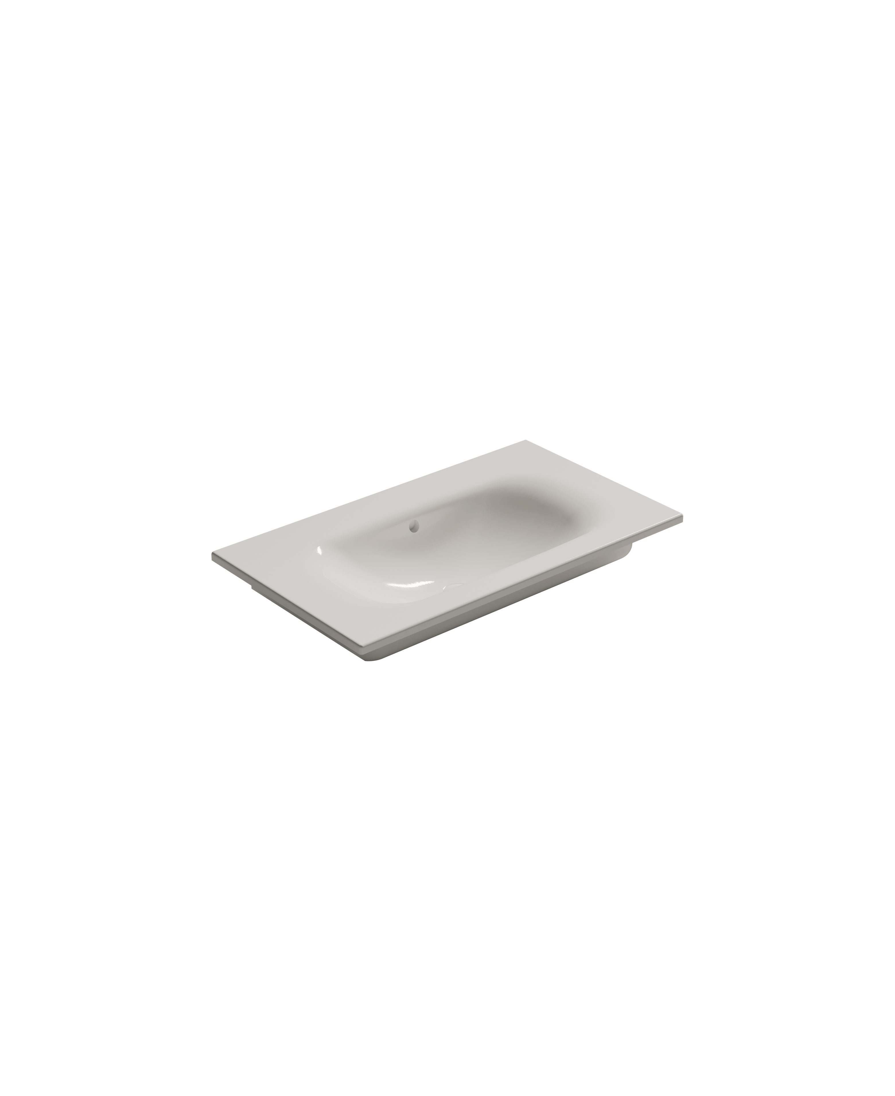 Lavabo incasso 81x46 in ceramica che interpreta la collezione con proporzioni armoniche e un carattere misurato. L’altezza ridotta e il design della vasca ne fanno una soluzione elegante, capace di dare ritmo all’arredo senza appesantire lo spazio.