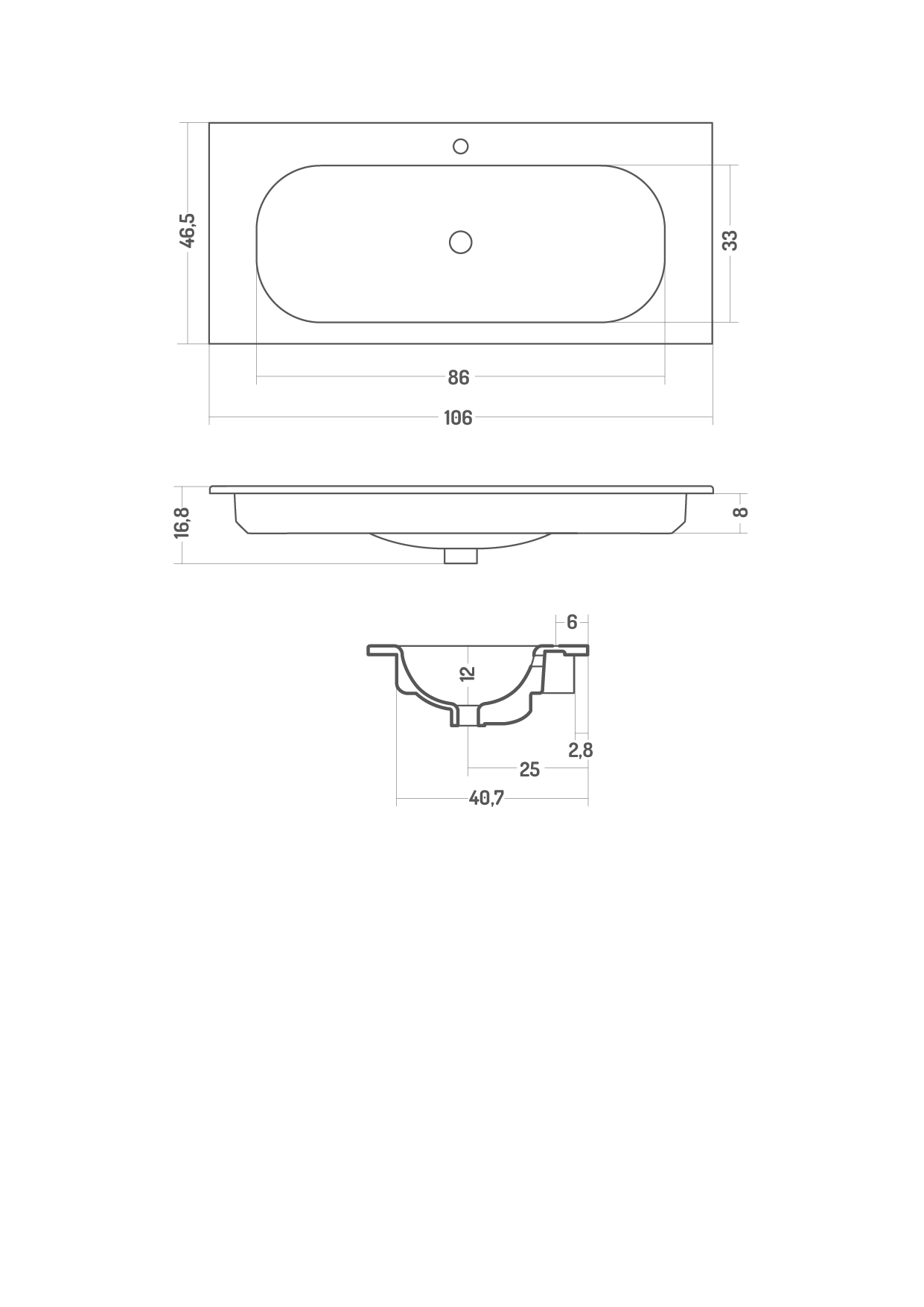 Lavabo incasso 106x46