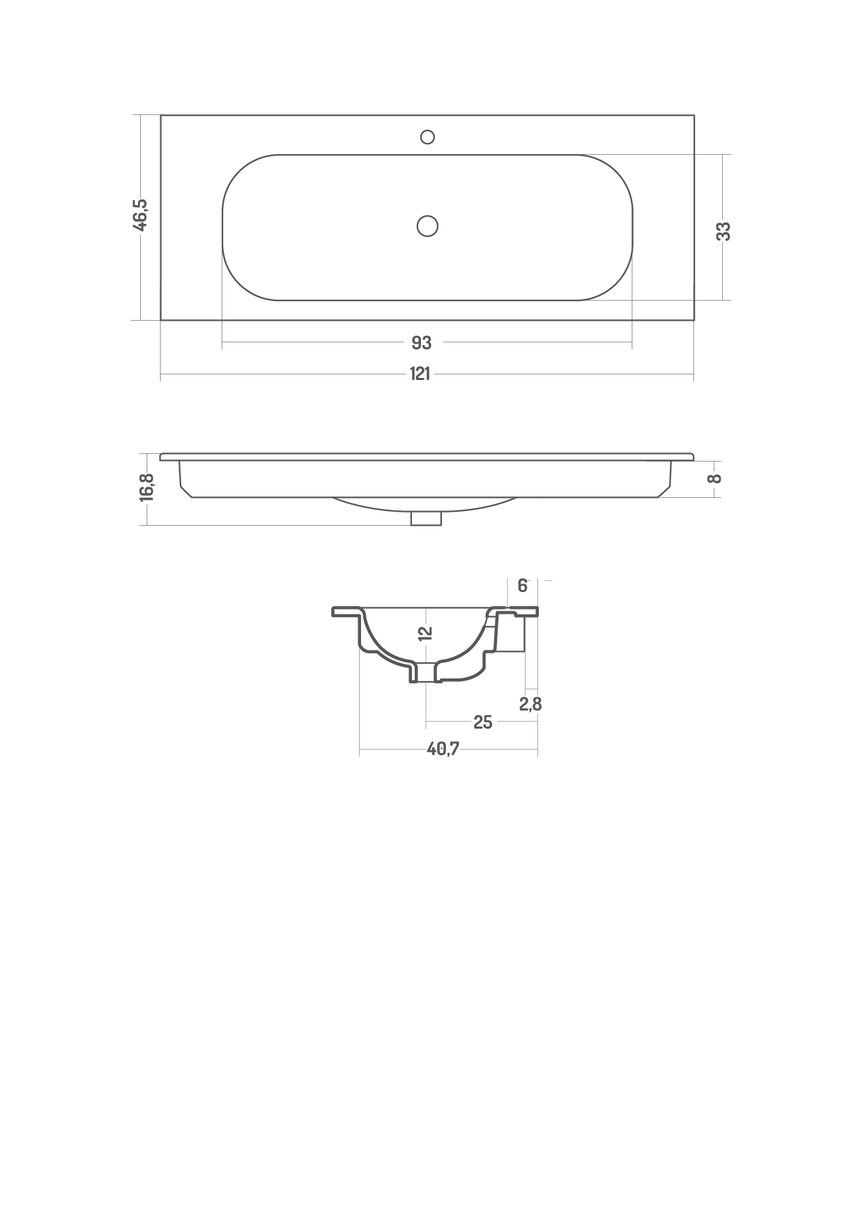 Lavabo incasso 121x46