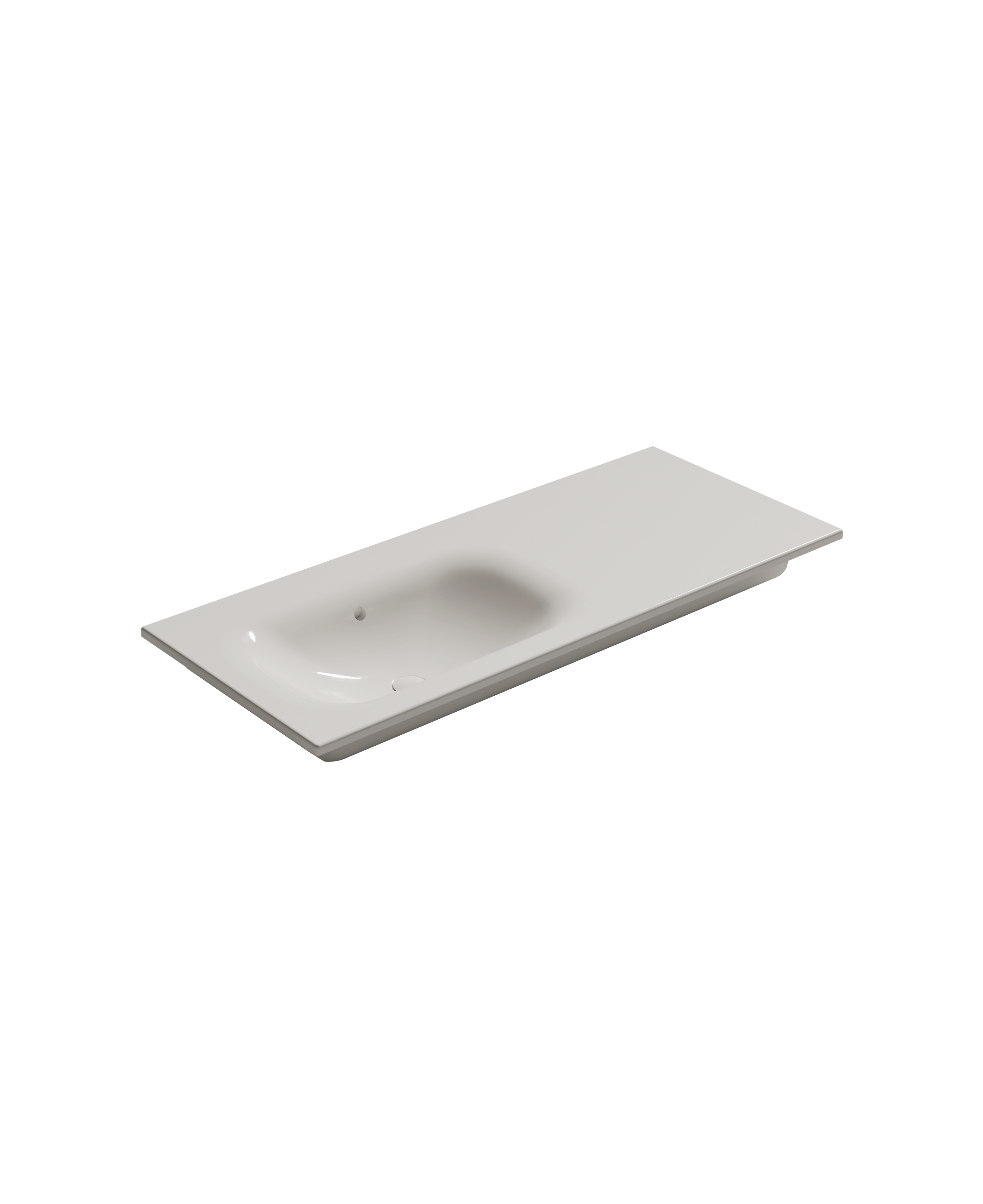 Lavabo incasso 121x51 SX in ceramica che sviluppa la composizione in modo essenziale e ben proporzionato. Il disegno della vasca, il profilo sottile e la forma rettangolare restituiscono una presenza discreta, elegante e perfettamente integrata nel bagno.